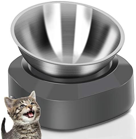 Pet Supplies Ayada Raised Cat Food Bowl Stainless Steel Cat Dish For Food Water Anti Vomiting Elevated With Stand Ergonomic Lifted Slanted Tilted 15 Angle Metal Single Kitty Kitten Wet Food